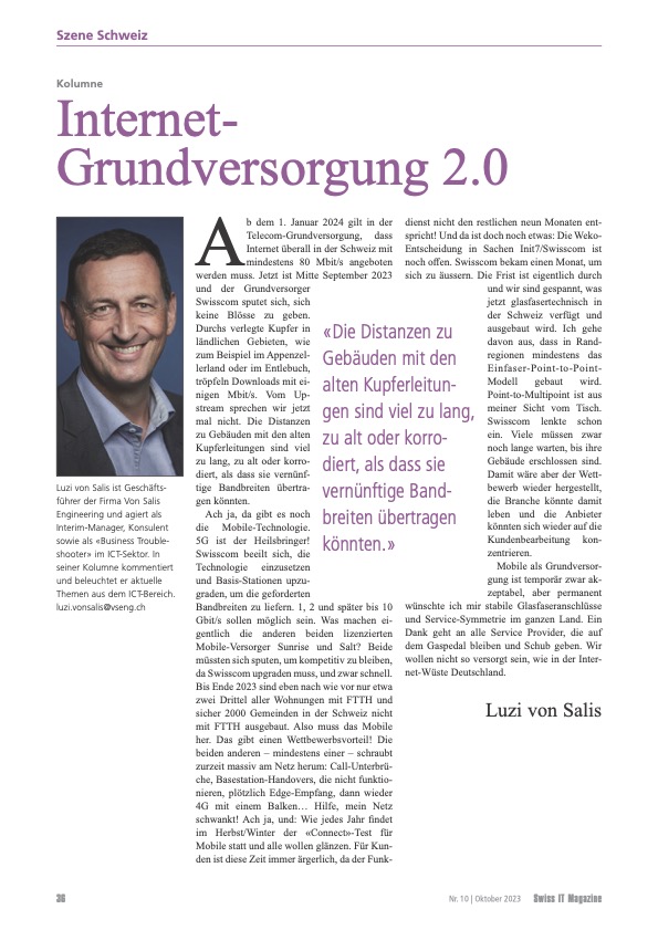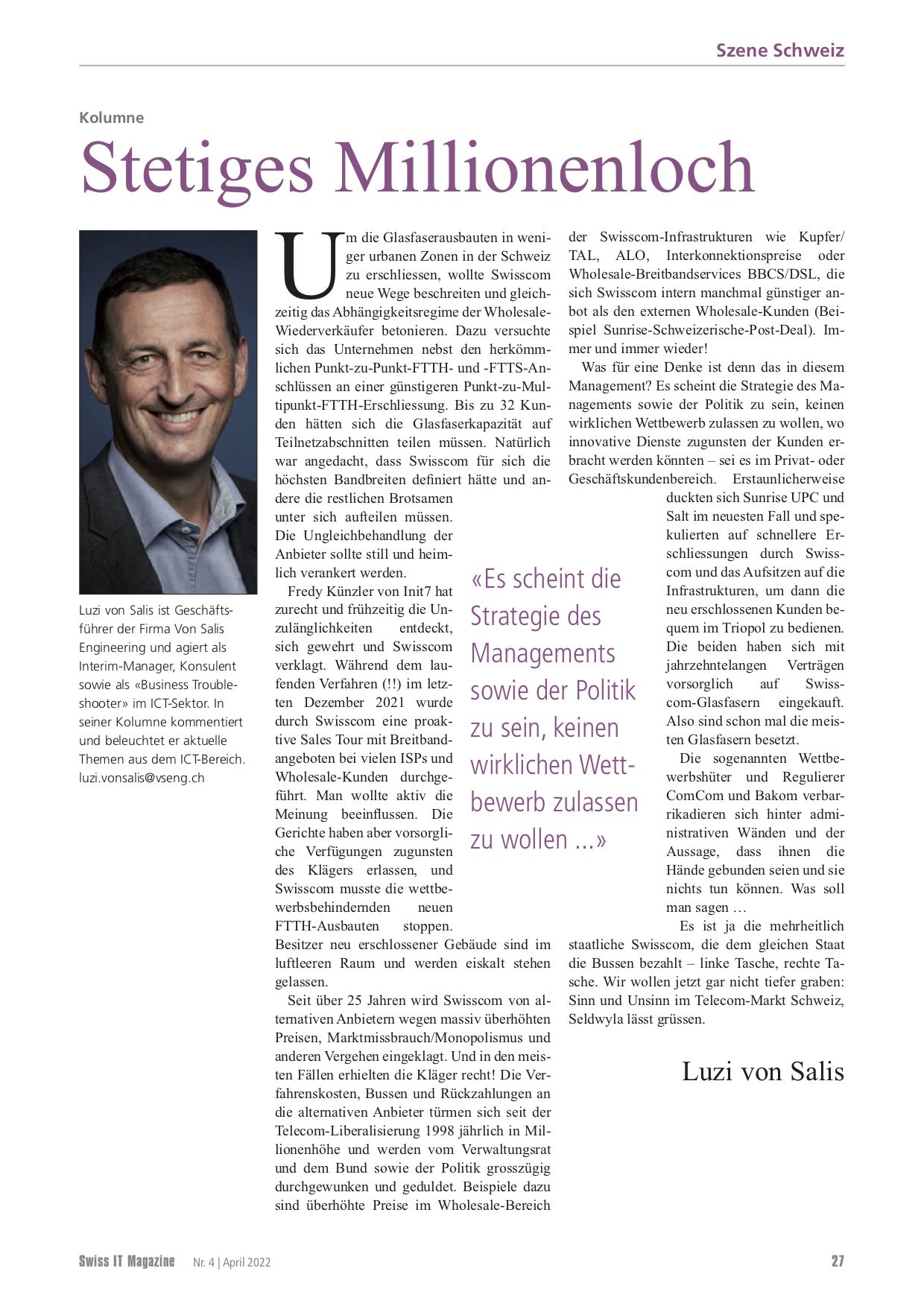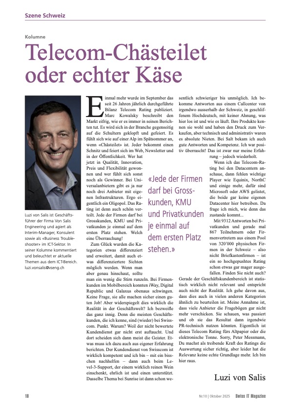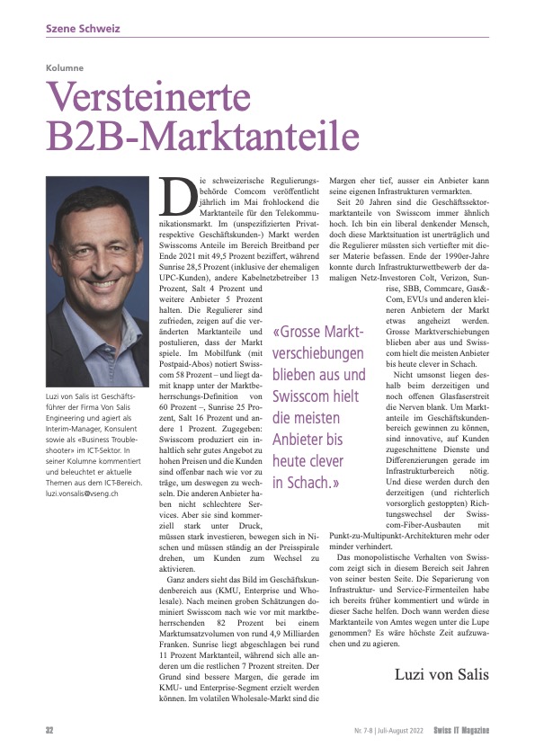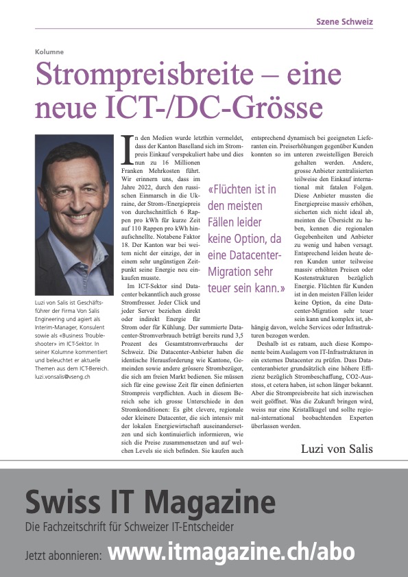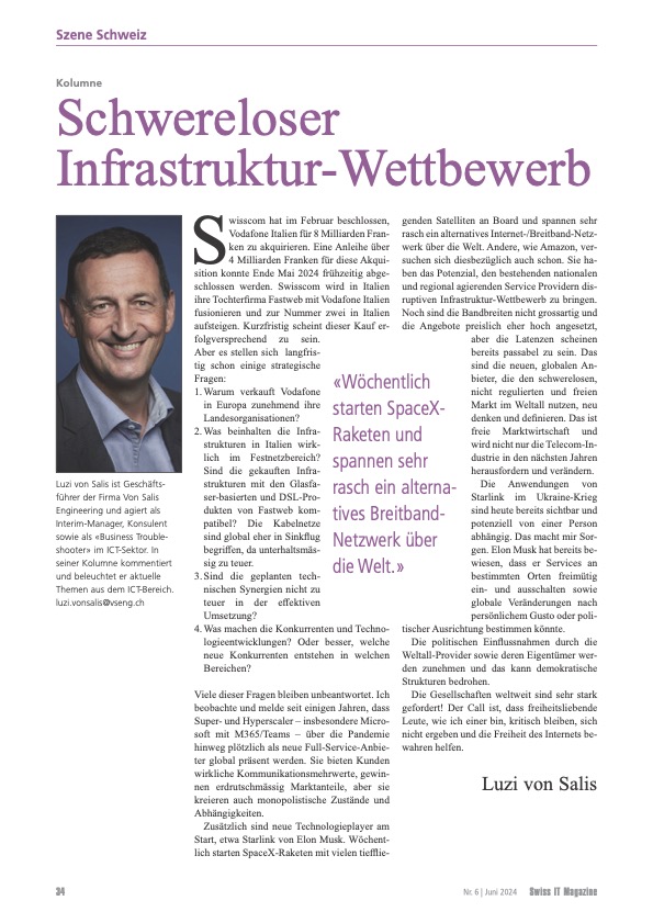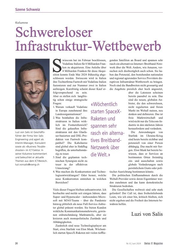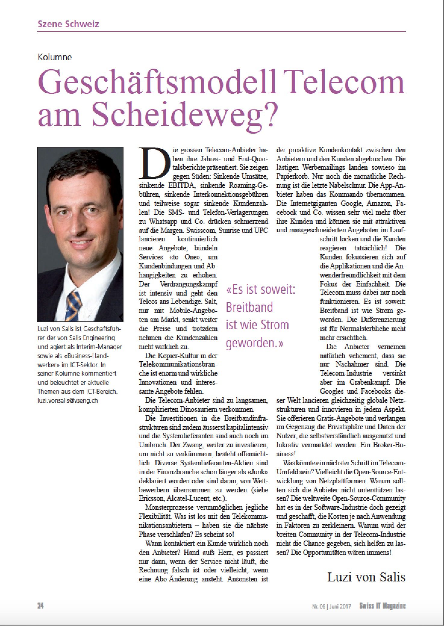 VSENG kommentiert pointiert aktuelle, geschäftliche Themen und schreibt im Swiss IT Magazin reglemässig über den ICT-Telecom Markt Schweiz. Meinungen werden authentisch, kritisch und persönlich formuliert.