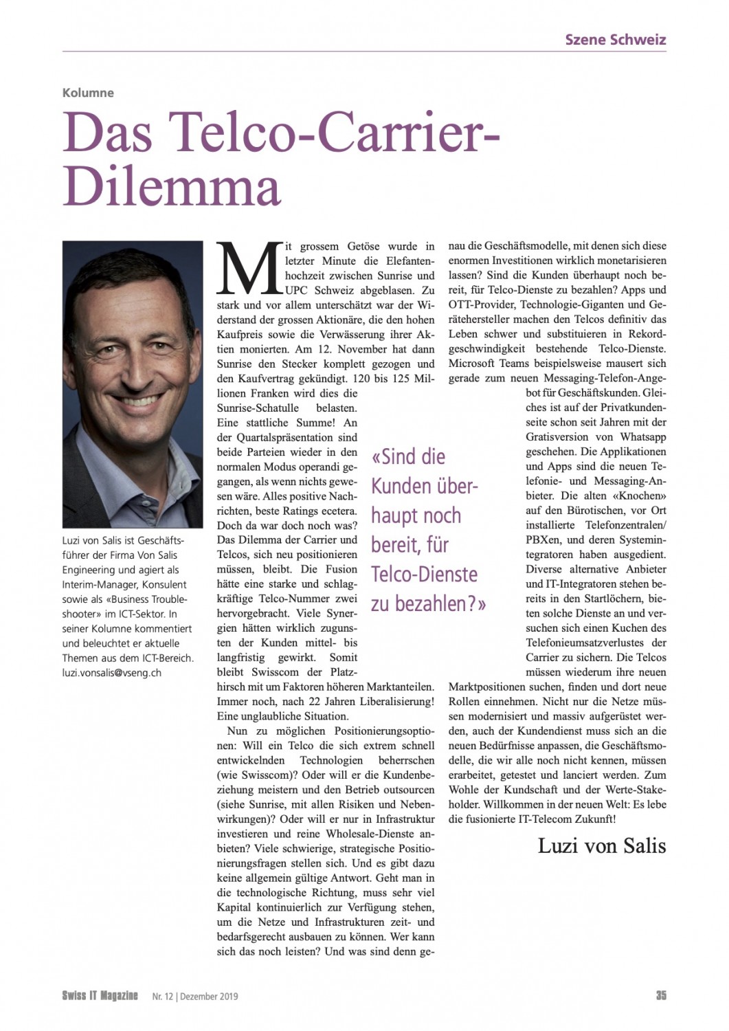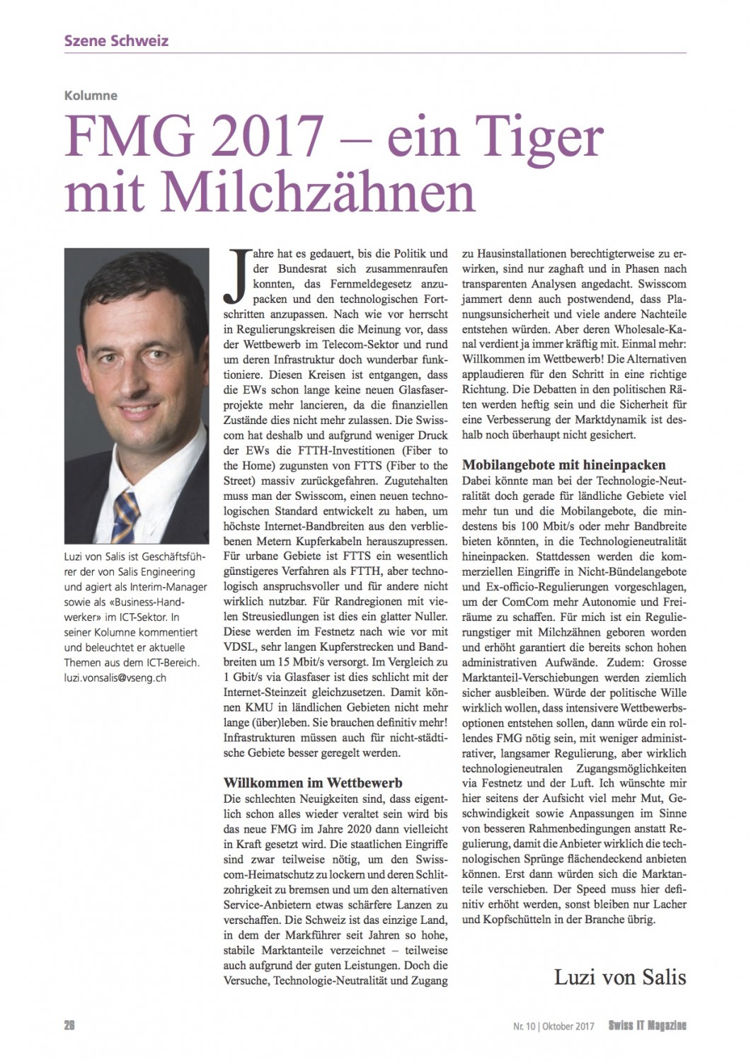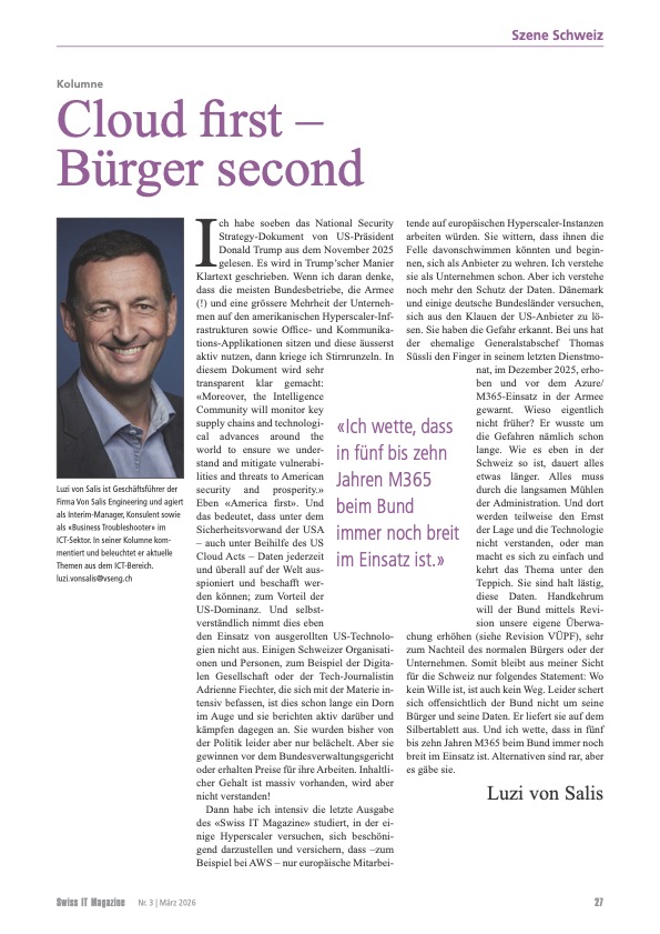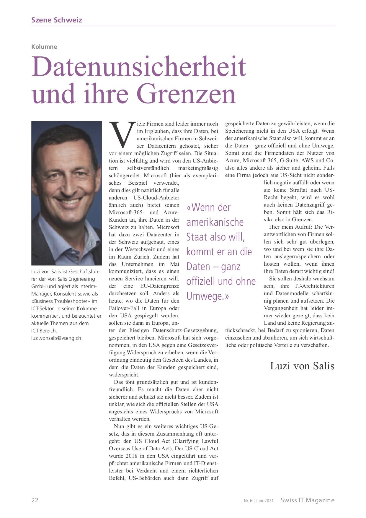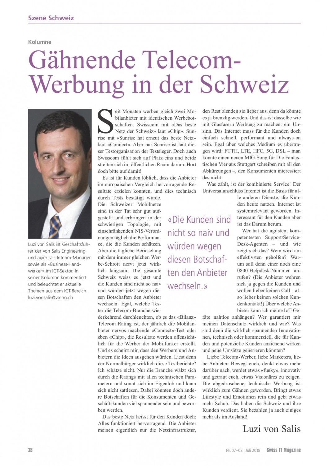 VSENG kommentiert pointiert aktuelle, geschäftliche Themen und schreibt im Swiss IT Magazin reglemässig über den ICT-Telecom Markt Schweiz. Meinungen werden authentisch, kritisch und persönlich formuliert.