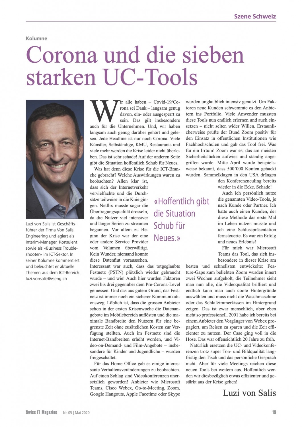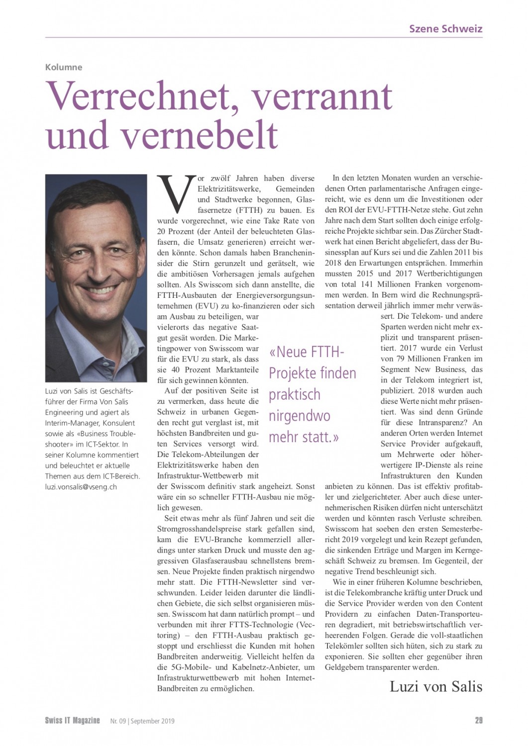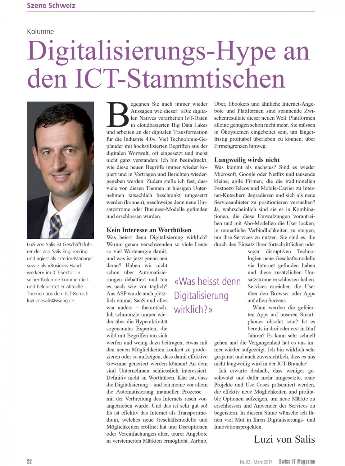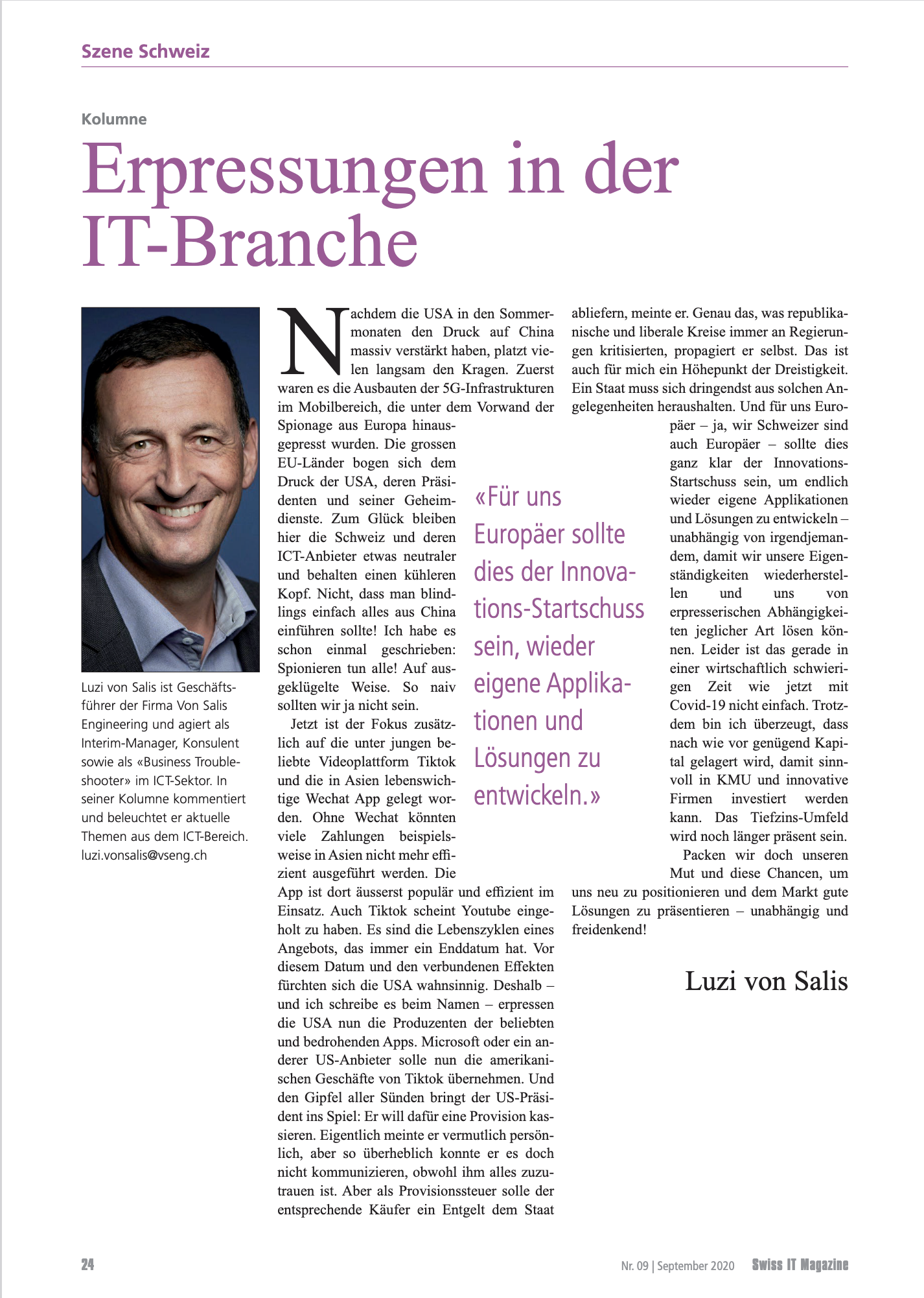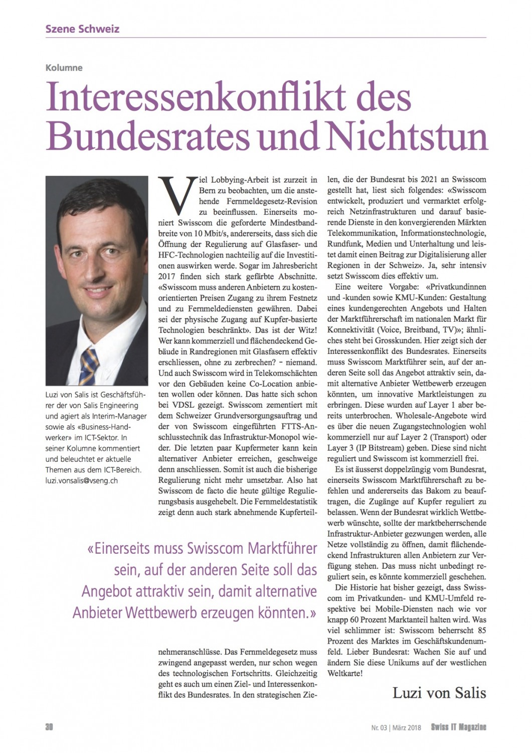 VSENG kommentiert pointiert aktuelle, geschäftliche Themen und schreibt im Swiss IT Magazin reglemässig über den ICT-Telecom Markt Schweiz. Meinungen werden authentisch, kritisch und persönlich formuliert.